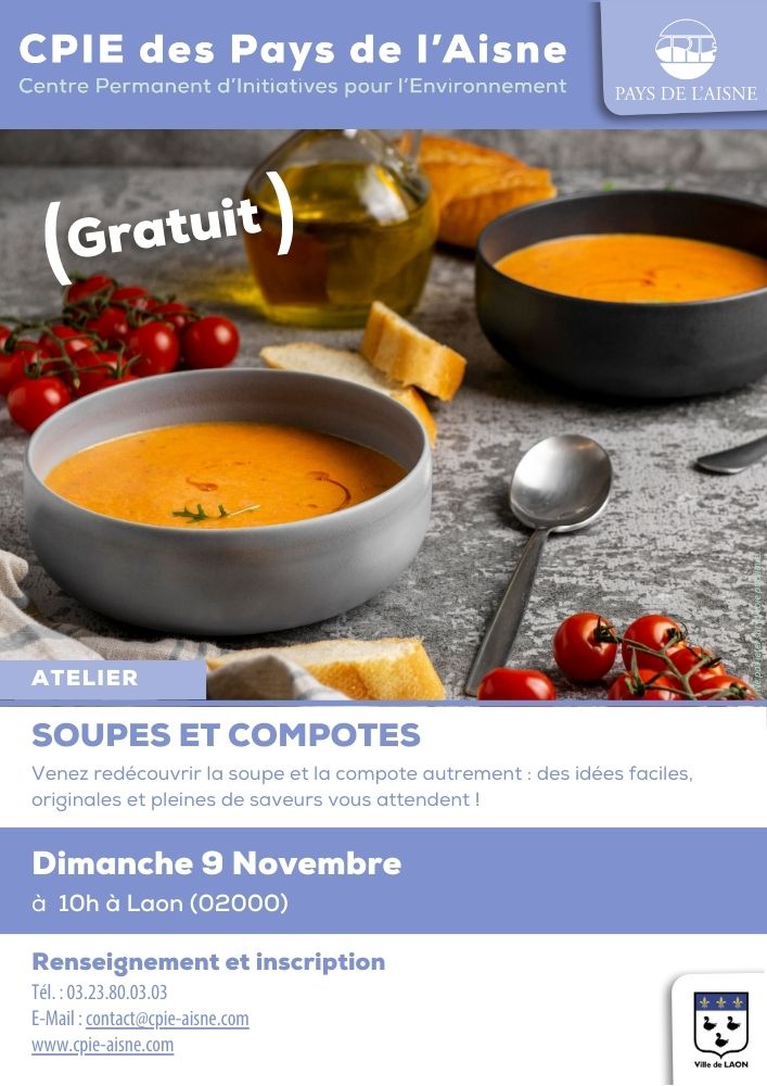Atelier « SOUPES ET COMPOTES » Dimanche 9 Novembre à 10h00 à Laon