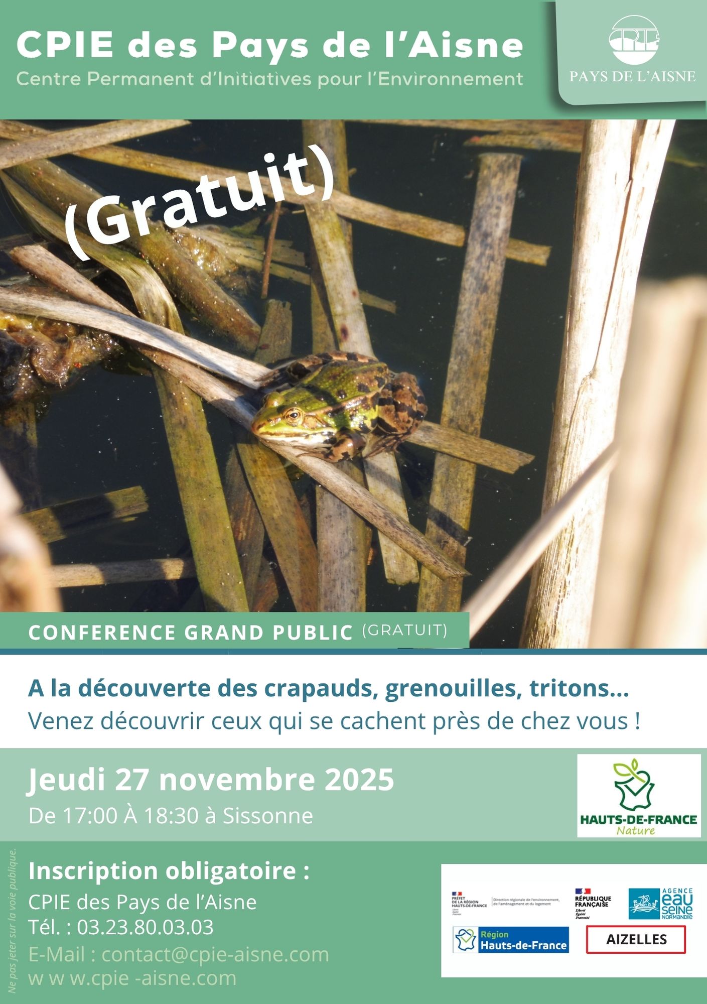 CONFERENCE "A la découverte des crapauds, grenouilles, tritons..." Jeudi 27 novembre 2025 De 17:00 À 18:30 à Sissonne