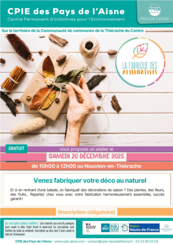 Atelier "Venez fabriquer votre déco au naturel " SAMEDI 20 DÉCEMBRE 2025 de 10h00 à 12h00 au Nouvion-en-Thiérache