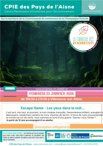 Escape Game "Les yeux dans la nuit..." VENDREDI 23 JANVIER 2026 de 19h30 à 21h30 à Villeneuve-sur-Aisne