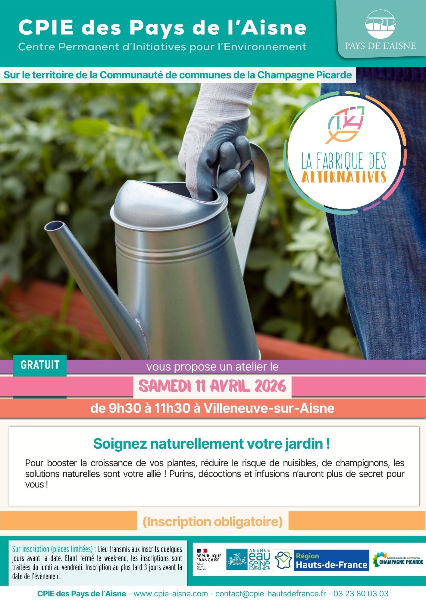 Atelier - Soignez naturellement votre jardin ! - SAMEDI 11 AVRIL 2026 de 9h30 à 11h30 à Villeneuve-sur-Aisne