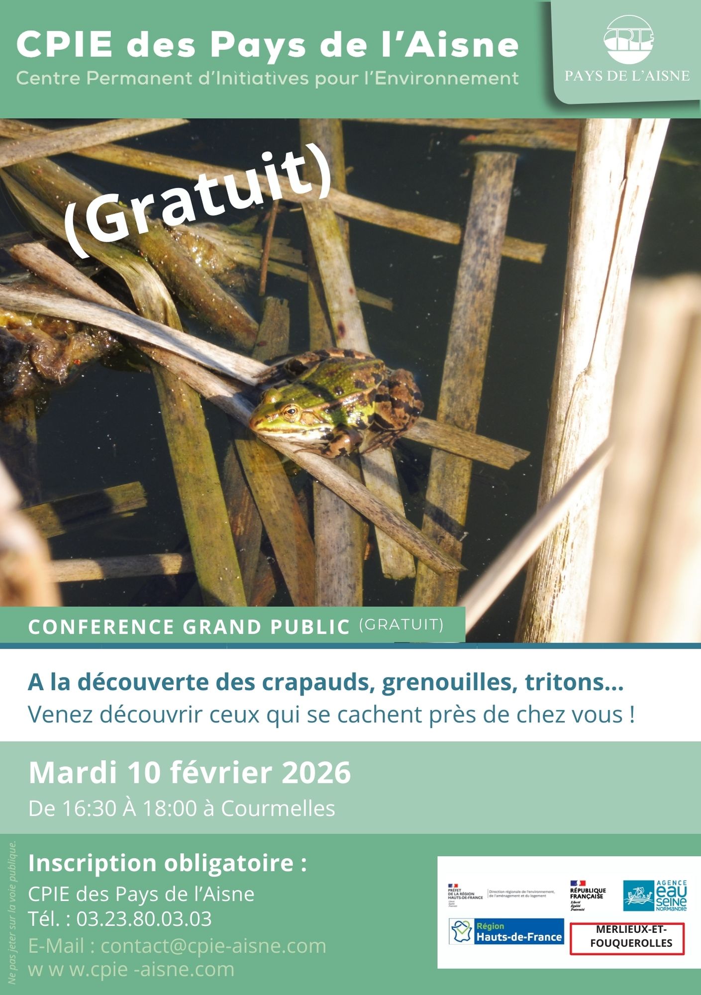 CONFERENCE "Crapauds, grenouilles, tritons" Mardi 10 février 2026 De 16:30 À 18:00 à Courmelles