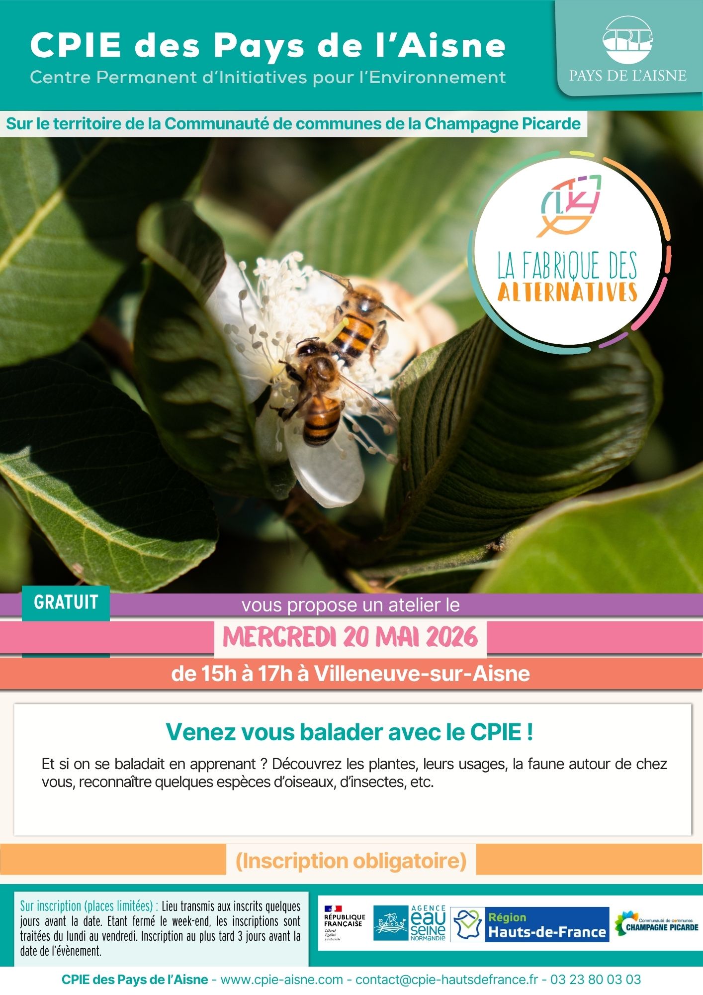 Venez vous balader avec le CPIE ! - MERCREDI 20 MAI 2026 de 15h à 17h à Villeneuve-sur-Aisne
